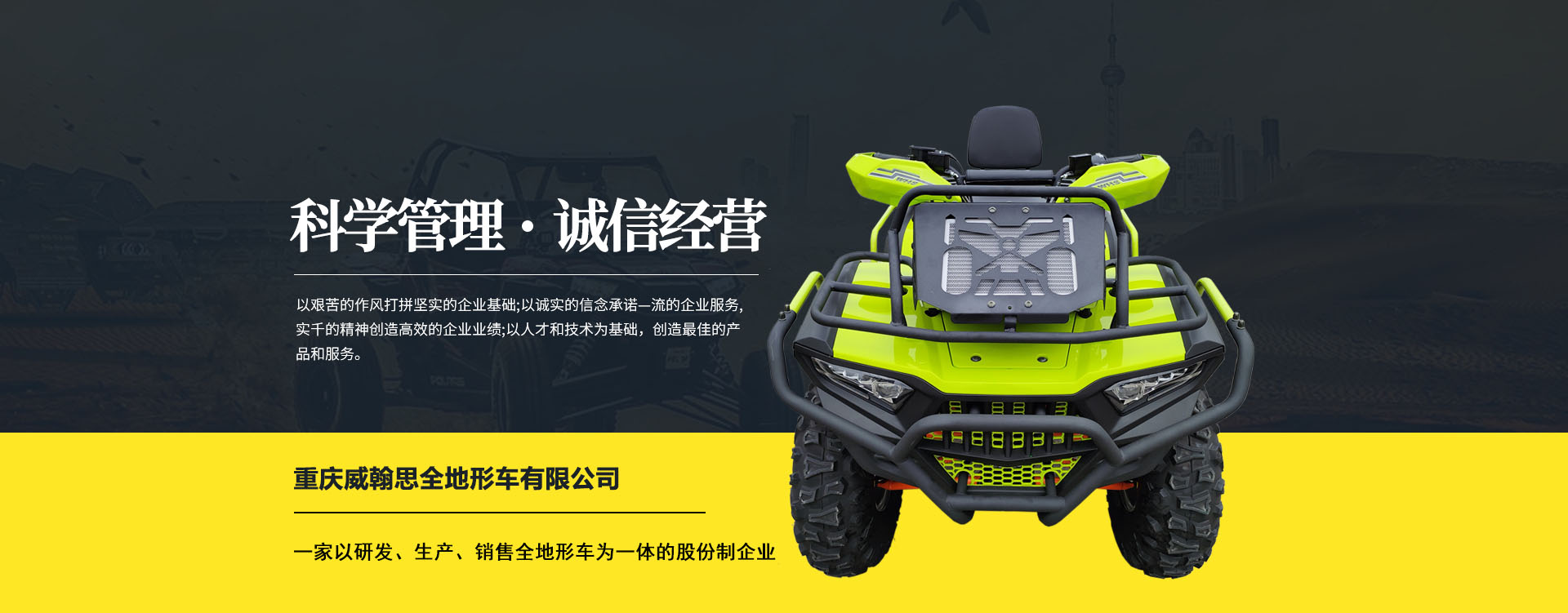 重慶威翰思全地形車有限公司成立于2016年9月,一家以研發(fā)、生產(chǎn)、銷售全地形車為一體的股份制企業(yè)。公司銷售額超過5000萬。現(xiàn)有專業(yè)市場(chǎng)售后服務(wù)團(tuán)隊(duì)。公司秉承“敬業(yè)、超越、活力、用戶至上”的企業(yè)精神,“以人為本,合作共贏;”的核心價(jià)值觀,“嚴(yán)格管理創(chuàng)優(yōu)質(zhì)、名牌戰(zhàn)略拓市場(chǎng)”的質(zhì)量方針,使公司一步步邁上新的臺(tái)階。公司與重慶航天巴山摩托車制造公司達(dá)成戰(zhàn)略合作協(xié)議。共同出資致力于沙灘車旅游市場(chǎng)產(chǎn)品研發(fā),項(xiàng)自運(yùn)營(yíng)指導(dǎo),市場(chǎng)維護(hù)等全方位市場(chǎng)拓展。重慶航天巴山摩托車制造公司授權(quán);重慶威翰思全地形車有限公司為中國(guó)區(qū)唯─戰(zhàn)略合作伙伴。